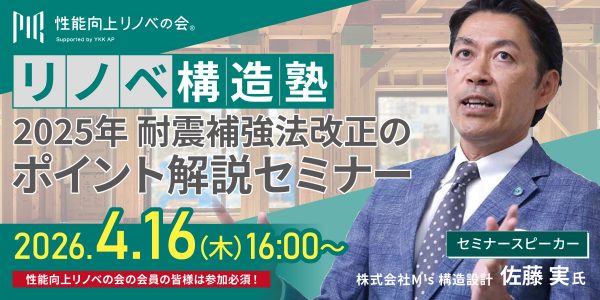 性能向上リノベの会は、既存住宅のリフォーム・リノベーションの請負工事を行う工務店や設計者、買取再販事業を行う不動産事業者などのプロユーザーを対象に会員組織を形成し、既存住宅の断熱と耐震の性能向上を図るリノベーションの事業領域を促進。